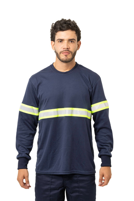 Camiseta Reflectiva Manga Larga para Hombre – Cuello Redondo y Puños Rib, Alta Visibilidad